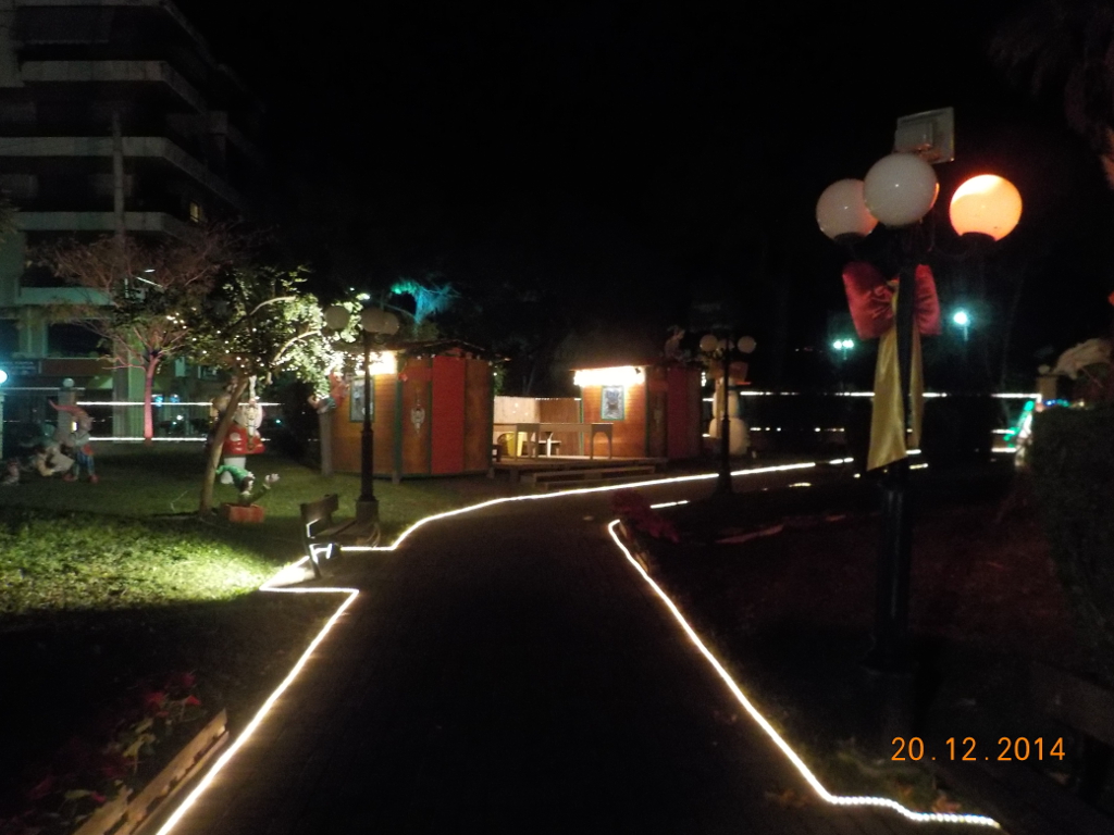Η εταιρεία μας ανέλαβε τον Χριστουγεννιάτικο φωτισμό του Δημοτικού Πάρκου Αιγίου των Χριστουγένων 2014. Οι εργασίες περιελάμβαναν τη μελέτη, προμήθεια και εγκατάσταση πίνακα διανομής, φωτοσωλήνα στους διαδρόμους, χριστουγεννιάτικες παραστάσεις, RGB φωτοσωλήνας σε λίμνη, κρυφός φωτισμός σε δέντρα και όλες οι υπόλοιπες ηλεκτρολογικές συνδέσεις